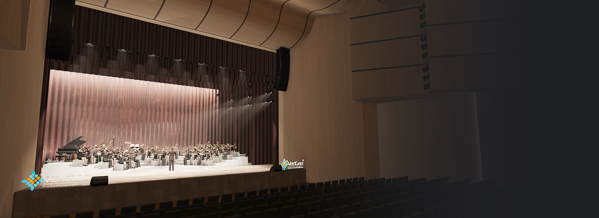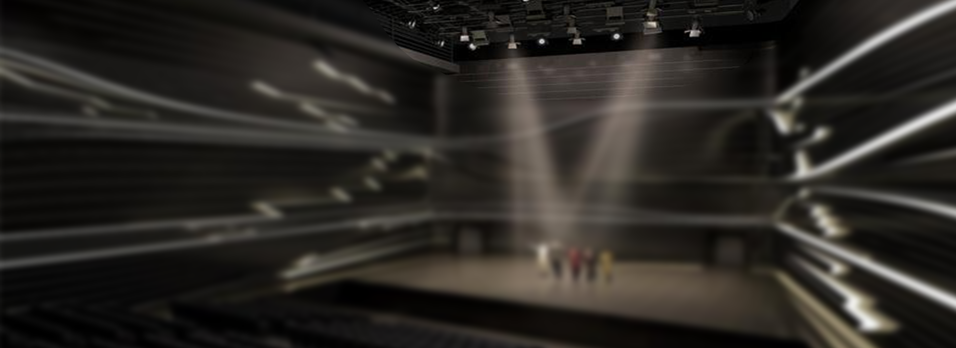 Когда поднимается занавес в комнате прямой трансляции, розово-фиолетовые лучи проносятся по темному небу, как метеоры, а ледяно-синие световые блоки встраиваются в стены, как кристаллы — начинается концерт света и тени. Дизайн освещения для групповых трансляций никогда не бывает простым нагромождени